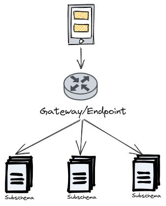 With schema stitching, you can take two or more GraphQL schemas and merge them into one endpoint. This endpoint can pull data from all of them. This endpoint delegates the client request to subschemas that is responsible for providing requested fields.